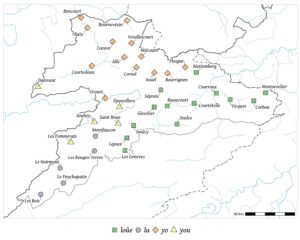 Car s’il existe bien un continuum linguistique sur le territoire, les mots peuvent prendre des formes diffĂ©rentes selon la rĂ©gion, voire entre villages voisins, trahissant rapidement l’origine du locuteur. Par exemple, la façon de dire « eux /elles » dessine les principales rĂ©gions du canton : yo en Ajoie, you dans les cĂŽtes du Doubs, lu dans les Franches-Montagnes et loĂ»e dans la VallĂ©e de DelĂ©mont.